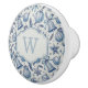 Custom Monogram Blue Toile Christmas Ornaments Ceramic Knob