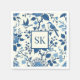 A set of custom monogrammed coasters that blend utility with classic elegance. Each coaster features a rich blue and white design that echoes the sophisticated patterns of antique porcelain, complete with stylised botanical illustrations and peaceful birds. Centred on each coaster is a square monogram showcasing the initials in a bold, serif font that adds a personal touch to the design. These coasters not only protect surfaces from heat and moisture but also serve as a statement of personal style. They are perfect for use in a home or office setting, offering a touch of elegance to any table setting. Whether used for a daily cup of coffee or during a formal gathering, these monogrammed coasters are a blend of practicality and personalised charm.