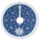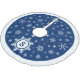 Custom Blue and White Monogram holiday tree skirt. Blue tree skirt with white snowflakes and white border. Large snowflake in centre front of skirt where you can add your initial. Unique snowflake Christmas tree skirt in beautiful midnight blue - personalised with the monogram of your family's last name.