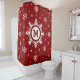 Custom monogram wintertime Christmas shower curtain. Personalised red shower curtain with white snowflakes. Large snowflake in centre where you can add your initial. Unique Christmas bathroom decor accessory shower curtain - personalised with your monogram.
