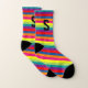 Custom monogram colourful rainbow striped pattern socks. Cute coloured stripes print design for men and women. Custom clothing accessories for children and adults. Also nice as cheerful Christmas stocking. Available in small and large sizes. Modern fun design with bright colours. Add your own name initial letter, lucky number or funny quote. Funny Birthday gift idea for friends, family, dad, mum, wife, husband, son, daughter, brother, sister, co worker, boss, employee, stepdad, girl, boy, etc. Monogrammed presents for him and her.