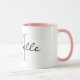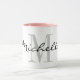 Custom monogram combo mug with pink colour inside. Design your own personalised drink cups. Classy monogrammed name initial design. Stylish typography template with script text. fancy Birthday or Christmas gift idea for friends, family, co worker, boss, teacher, coach, colleague, corporate employee etc. Customisable colours including the handle. Make your own unique coffee mug for home or office.