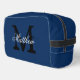 Custom monogram elegant navy blue toiletry bag. Classy typography template with vintage initial letter and script text. Colours can be changed. Cool Birthday or Father's Day gift idea for men.