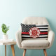 A beautiful thin red line Maltese cross monogram throw pillow featuring a Maltese cross symbolising fire rescue and a thin red line themed fire rescue American flag. Inside of the Maltese cross contains either yours or your gift recipient's first or last name initial monogram. An awesome customisable gift that anyone in fire rescue or retired will appreciate.