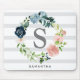 Custom Monogram Floral Wreath Grey Background Mouse Pad