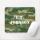 Custom monogram green army camouflage mouse pad. Cool masculine typography and camo background texture. Personalised mousepad design for men women and kids. Monogrammed with your name initial letter. Funny Birthday gift idea for boyfriend, dad, husband, uncle, grandpa, hunter, mum, mother, girfriend, wife, daughter, friend, co worker, boss, employee etc. Custom computer accessories with camo print for him or her.