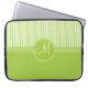 Custom Monogram Green Stripes Polka Dots Pattern Laptop Sleeve