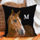 Beautiful brown and white quarter-horse photo pillow personalised with your monogram.