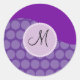 Custom Monogram Initial Purple Polka Dot Wave Classic Round Sticker