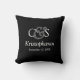 Coming together in marriage is celebrated in the unique, elegant monogram on this black, 2-sided throw pillow. Fully customisable, the sophisticated monogram brings together two first initials joined by a translucent ampersand that lays on top of the two letters, creating a unique 3D effect. The last name of the groom and bride and their wedding date complete this sophisticated yet minimalist design. In white and grey, classic script calligraphy is blended beautifully with modern typography against the black background of the throw pillow. This is a great keepsake gift for a married couple. See the Collection on this product page or the Home page, to find more versions. Congratulations from Home Together!