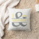 Personalised Custom Monogram keepsake wedding or anniversary pillow in grey and lemon yellow text or typography on a white background on the front and Lemon Yellow background on the back for square throw pillows and cushions. Customise with the bride and groom family name and wedding date. This stylish and chic, modern, trendy, contemporary design will enhance any home decor, living room, sofa, lounge, bedroom, office, or boat. This pillow or cushion is a perfect gift weddings, anniversaries, bride to be, couples, engagements or for yourself or someone you love. Simple and elegant.