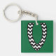 A very stylish keychain with the initial 'V' in a black and white chevron pattern. The background shown is dark green but you can choose from a wide selection of background colours by using the Edit button. You can also choose a different type or shape of Keychain or rotate the initial for a better fit - have fun with it!