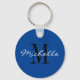 Custom monogram keychains in your colour of choice. Create unique key chains in your favourite colour combination. Personalise with monogram or text. Elegant template with script typography. Change the quantity to get the cheap discount price. Blue example.