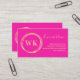 This is a modern and vibrant, logo and two initials, monogram card design. This stylish design, is in colourful hot pink/ magenta with light gold coloured typography / text. There are gold circles that form a wreath-like ring around the monogram letters. You can use this as your own logo or add your own. (If adding your own logo, simply delete the initials.) The template design is set up for you to simply add your business information and contact details. You can keep the monogram logo or add your own, along with your business name and business information on the front. On the back it has room for your business contact information, where you can add your website, social media info, telephone number and address or your contact details of your choice. Ideal for a professional and chic business card to give to your customers and business contacts. To personalise, simply add your initials or logo, and business information by using the personalise this text box. To customise further, check out the design editing tool, where you have the option of changing the colour or font. If you need help with personalisation, matching products, or for a custom design, contact me via zazzle chat.