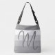 Custom Monogram M Striped Pattern Grey White Crossbody Bag