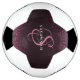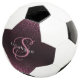Cool modern custom name soccer ball with your monogram in a swirly trendy script calligraphy on a pink glittery background. Personalise with the name of your future soccer star!