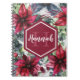Custom rustic red poinsettia notebook. - Whimsical watercolor red poinsettias, holly leaves, and winter berries on a white wood background. The winter floral background is topped with a berry red label and custom monogram / script calligraphy name template. A traditional, whimsical poinsettia gift with a personal touch.