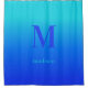 Custom monogram & name Turquoise to Blue Gradient Shower Curtain