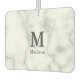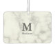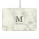 You can personalise your car air freshener with your monogram and name. The text is grey. The air freshener has a faux white marble pattern. All text can be edited or deleted.