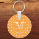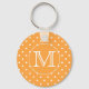 Custom Monogram. Orange and White Polka Dot. Key Ring