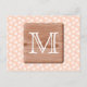 The country style design printed on this item was created from a picture of wood and a pretty patterned background image that has a ditsy floral pattern in coral pink and white. This item has a flat, printed woodgrain patterned image. There is a white monogram initial letter to be personalised. The image printed on this item is an image of a brown wooden tile and a pattern print background of pretty flowers on a coral pink colour. This design is a flat picture, it is not raised up.