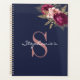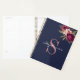 Custom Monogram Pink Burgundy Gold Floral Planner on blue background. Easy to personalise. Get yours today!