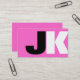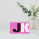 A bright pink background with two oversized letters for your initials on the front and you other information on the back.