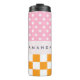 Custom Monogram Pink Orange Polka Dot Check Thermal Tumbler