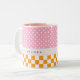 Custom Monogram Pink Orange Polka Dot Check Two-Tone Coffee Mug