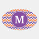 Custom Monogram Purple Orange Chevron Pattern Oval Sticker