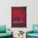 Macro photo of a beautiful red rose on black background with vintage grainy effect with custom personalizable monogram.