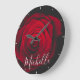 Custom monogram red rose vintage photograph large clock
