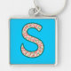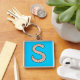 A very pretty Keychain with the initial 'S' in a red, green and white floral pattern on a sky blue background. You can easily change the shape and size of the keychain as well as the background colour (by using the Edit button). And if you see one of my other patterns that you prefer, please contact me through my store and I will create one at no extra charge.