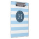 Custom Monogram Sky Blue and Navy Bold Stripes Clipboard