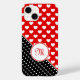 stylish cover with your custom monogram, red, black and white, hearts polka dot pattern