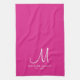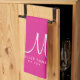 Custom Upload Add Your Photo Design or Logo Text Elegant Modern Cute Monogram Initial Name / Family Name Template Trendy Pink Kitchen Towel.