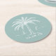 Custom Monogram Wedding Logo Palm Tree Round Paper Coaster
