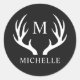 Custom Monogram with Black White Deer Antler Classic Round Sticker