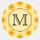 Custom Monogram, with Yellow Sunflowers. Classic Round Sticker