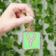 Custom Monogram Y Keychain, Ditsy Floral Pattern Key Ring