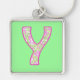 A very pretty Keychain with the initial 'Y' in a ditsy Pink Jasmine floral pattern on a Light Green background. You can easily change the shape and size of the keychain as well as the background colour (by using the Edit button). And if you see one of my other patterns that you prefer, please contact me through my store and I will create one at no extra charge.