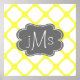 Custom Monogram Yellow and White Art Deco Pattern Poster