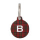 Handsome monogrammed dog tag with the front done in the red, black, and yellow clan Brodie plaid pattern, with a big white one letter monogram. The back of the tag is done in red, with white text. Personalise the monogram and the text on the back to suit your needs.