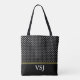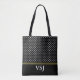 Customise this black and white polka dot tote bag with your initials. The double faux gold lines above the monogram are an artistic rendering (no gold foil on bag).