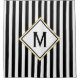 Personalise this large black monogram that is in the centre inside of a diamond border. The border is black, white, and faux gold. The background has black and white stripes that are going down (vertical).