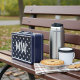 This is a standard metal lunchbox that appears to work just fine. We designed this box ourselves with an uploaded photo and custom text on the front and back. It looks absolutely beautiful except the front of the lunchbox is not centered like it shows in the photo. The print borders don't align with the inset flat part of the box where the preview photo online showed it perfectly centered in there. The back looks nice and centered though.