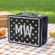 Custom Monogrammed Black and White Weaved Pattern Metal Lunch Box
