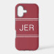 Stylish custom design features up to three bold letter initials in a shadowed white font on a contemporary crimson red background. Background is divided into thirds by two matching stripes above and below the initials. Simple to use modern template allows for easy personalisation. E-mail beachpausedesigns@gmail.com or use the message link in this listing with questions or custom colour requests.