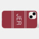 Stylish custom design features up to three bold letter initials in a shadowed white font on a contemporary crimson red background. Background is divided into thirds by two matching stripes above and below the initials. Simple to use modern template allows for easy personalisation. E-mail beachpausedesigns@gmail.com or use the message link in this listing with questions or custom colour requests.