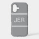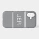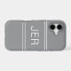 Stylish custom design features up to three bold letter initials in a shadowed white font on a light grey background. Background is divided into thirds by two matching stripes above and below the initials. Simple to use modern template allows for easy personalisation. E-mail beachpausedesigns@gmail.com or use the message link in this listing with questions or custom colour requests.